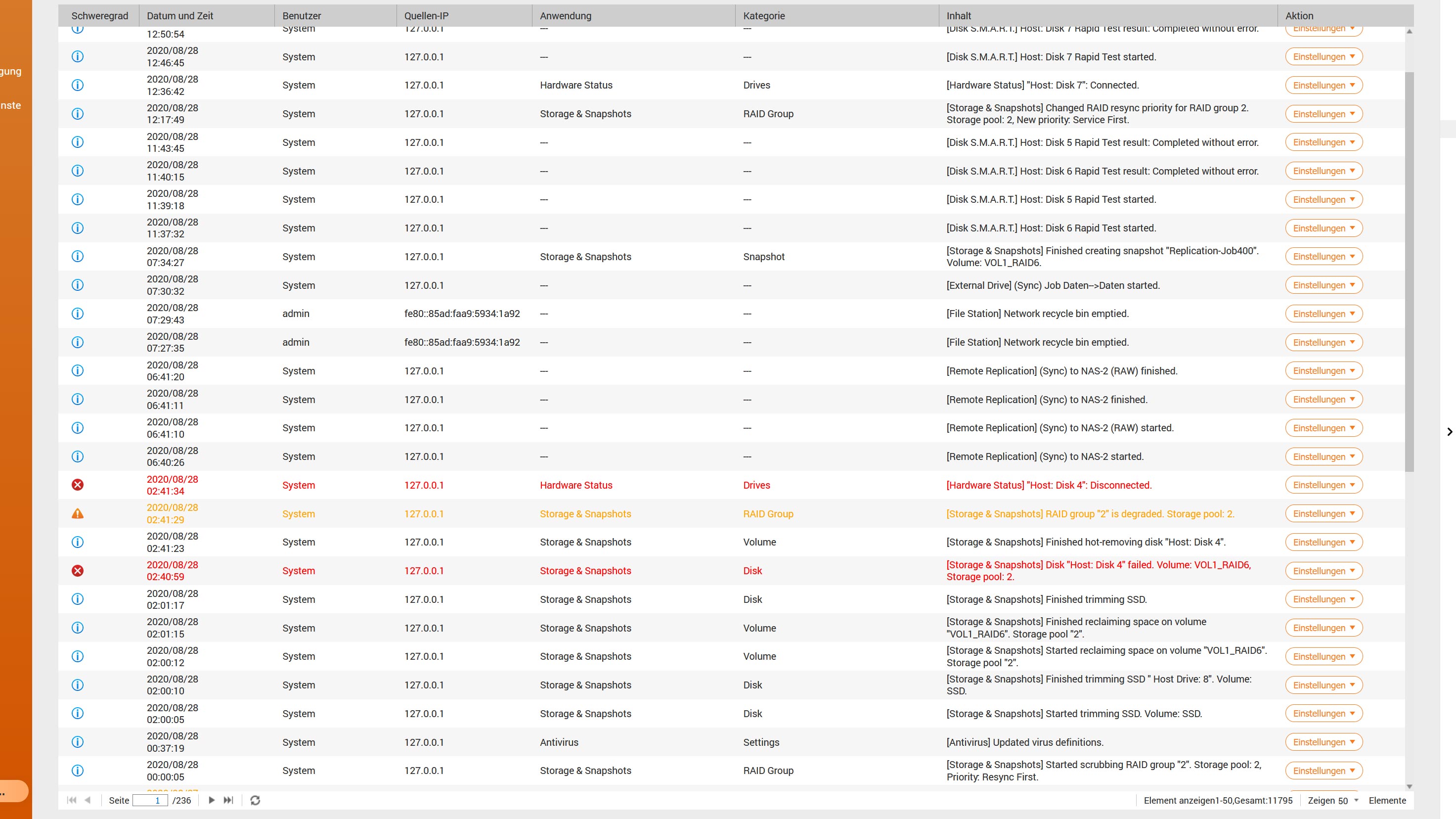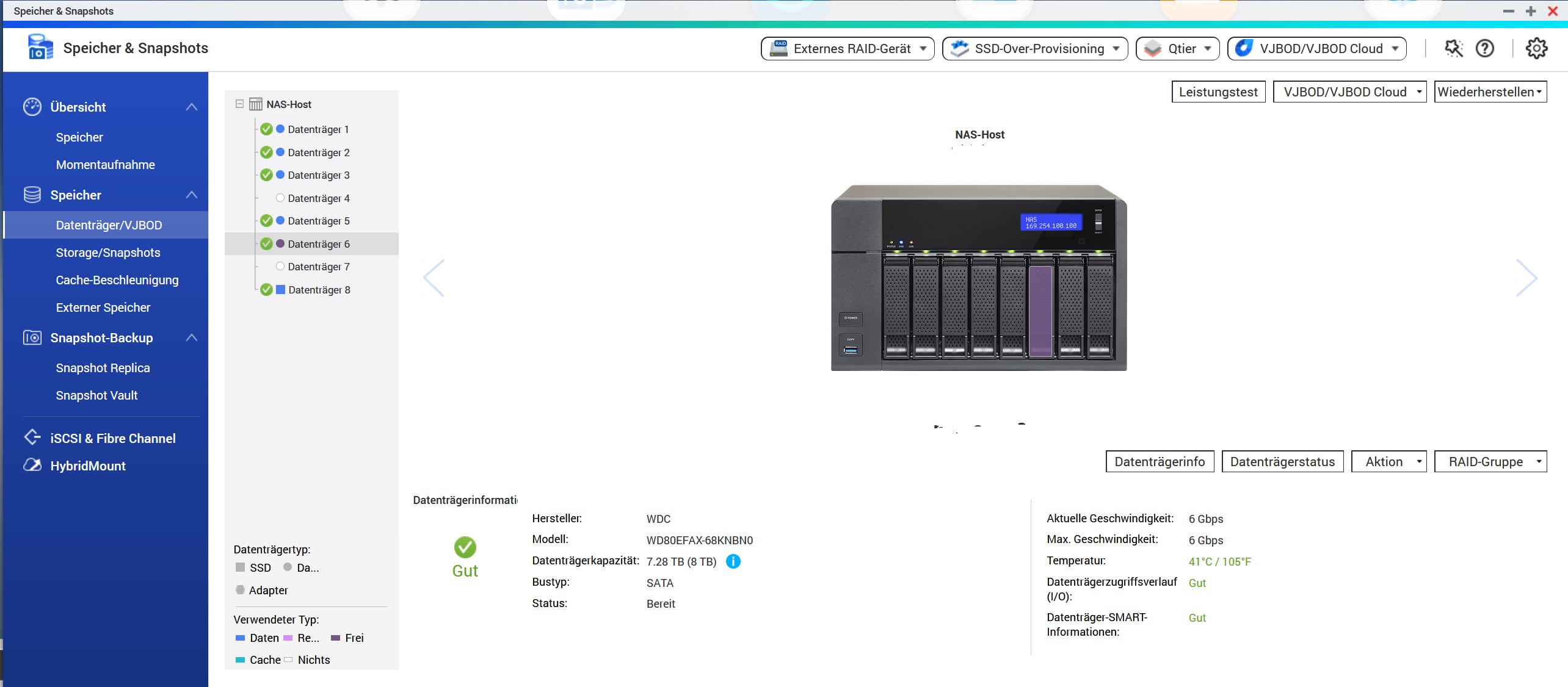 QNAP NAS 6x WD Red 8TB mit RAID6 Storagepool (Thin Volume), eine Platte ist heute Nacht beim monatlichen RAID-Check ausgefallen. (Beim letzten HDD-Ausfall vor 2 Jahren war es RAID5 und während Rebuild ist dann die 2.Platte ausgefallen, somit sind ein paar Daten verloren gegangen)