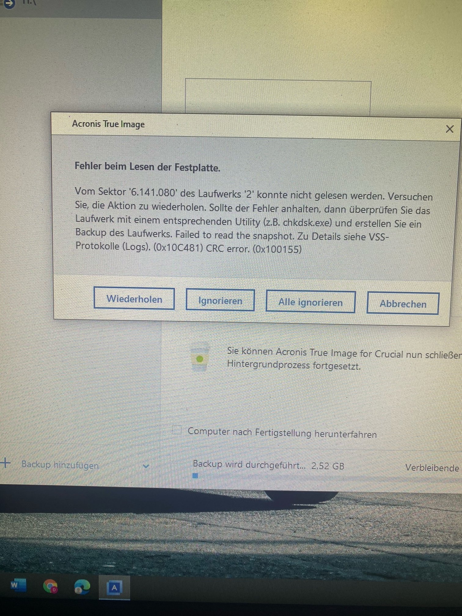HDD Backup nicht möglich (manuell und mit Acronis True Image)