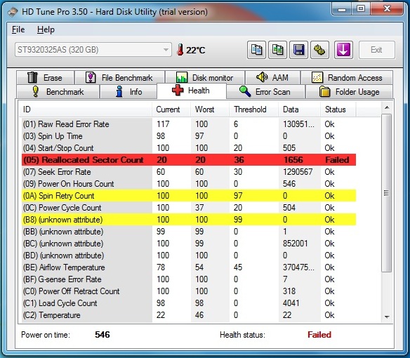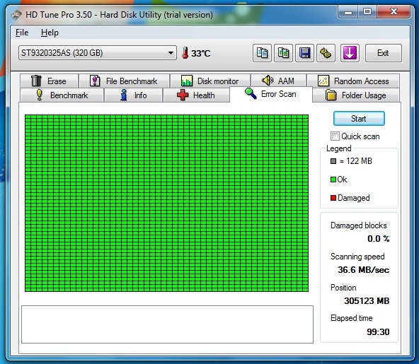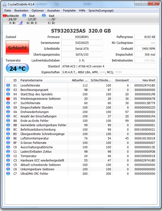 Ein Test mit dem Programm "Seatools" ergab keine Fehlermeldungen.