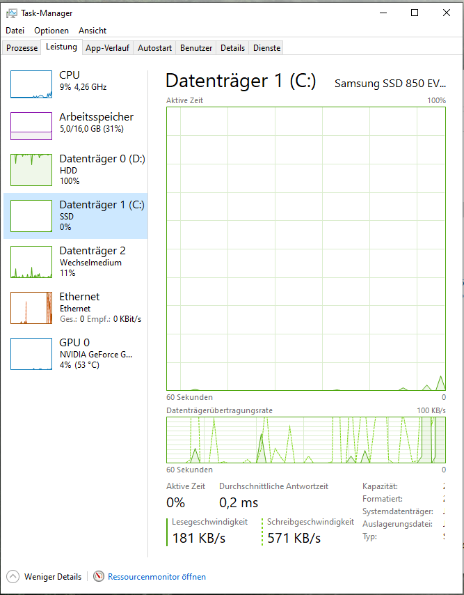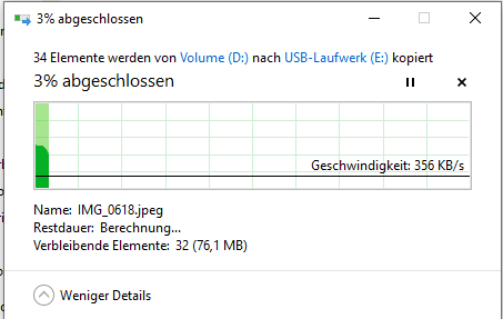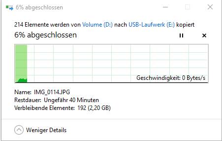 Natürlich war das bei einem 8 Jahre alten PC zu erwarten, dass irgendwann etwas kaputt geht und Ersatz besorge ich mir direkt bei Mediamarkt (wollte mir jetzt eine 1TB SSD holen). Jedoch sind auf der Festplatte nahezu alle Fotos/Videos/Spielstände, da meine SSD ja nur 250gb hat und es wäre schade, das alles wegzuschmeißen. Ich habe jetzt mal versucht einige Dateien auf einen Stick zu ziehen und es scheint zu funktionieren, jedoch nur sehr sehr langsam. Ein Ordner mit 3GB hat ungefähr 45 Minuten gebraucht und die Auslastung war auch weiterhin bei 100%.