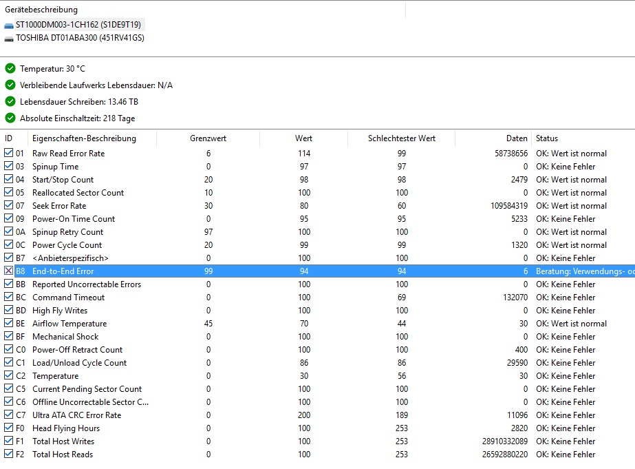 Die HD ist mit Sicherheit so OK wie jede andere mit selber Leistung. Die ist noch nicht alt, aber kann trotzdem auch ausfallen. Als ob die SMART-Werte die Garantie der Haltbarkeit wären. Die sollte noch lange halten, aber ....