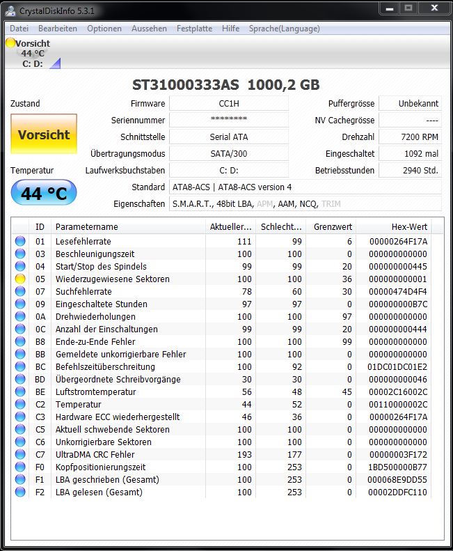 Sea-Tools (Diagnoseprog. von Seagate) findet keine HDD-Probleme