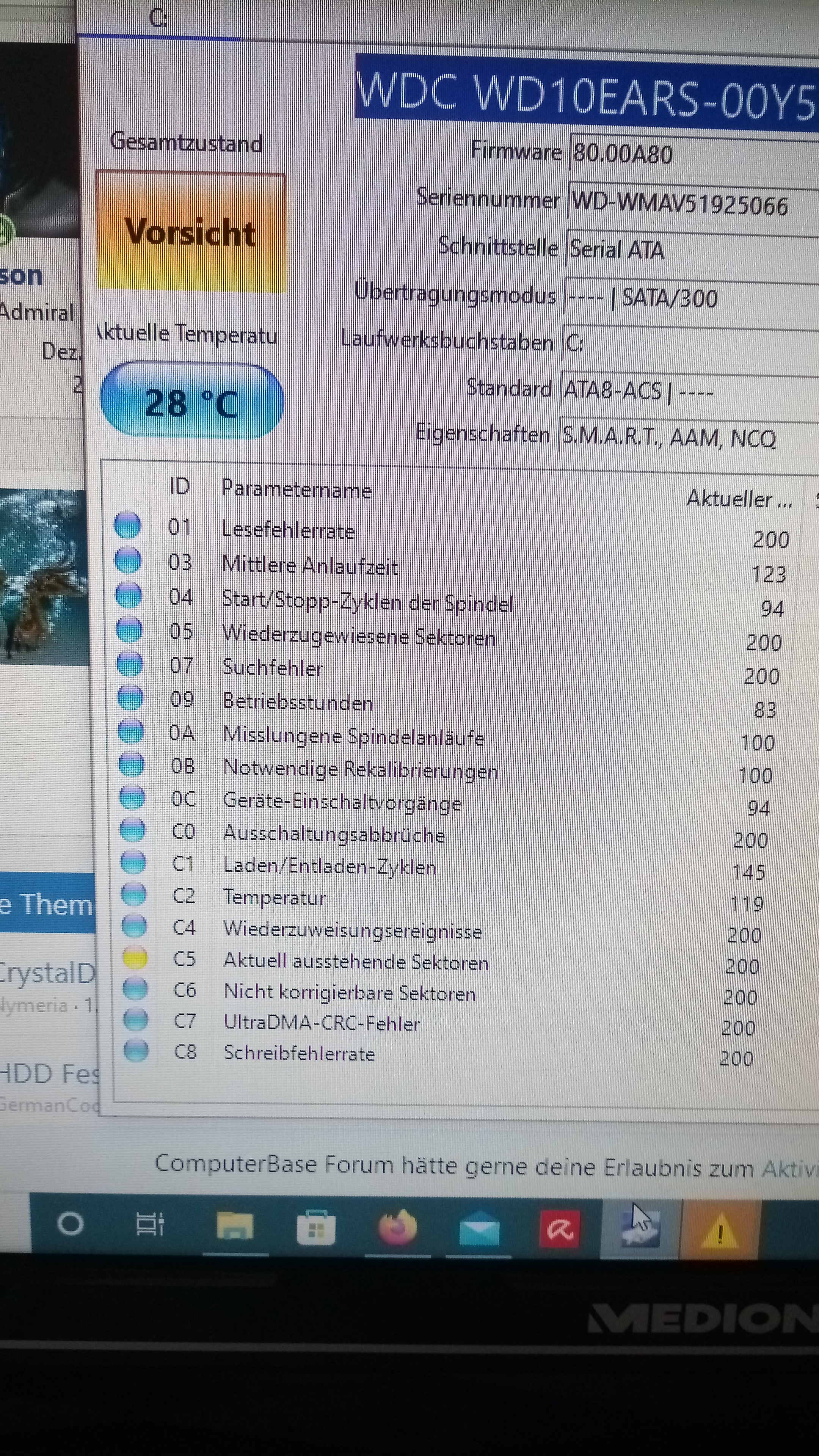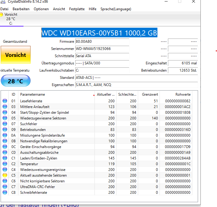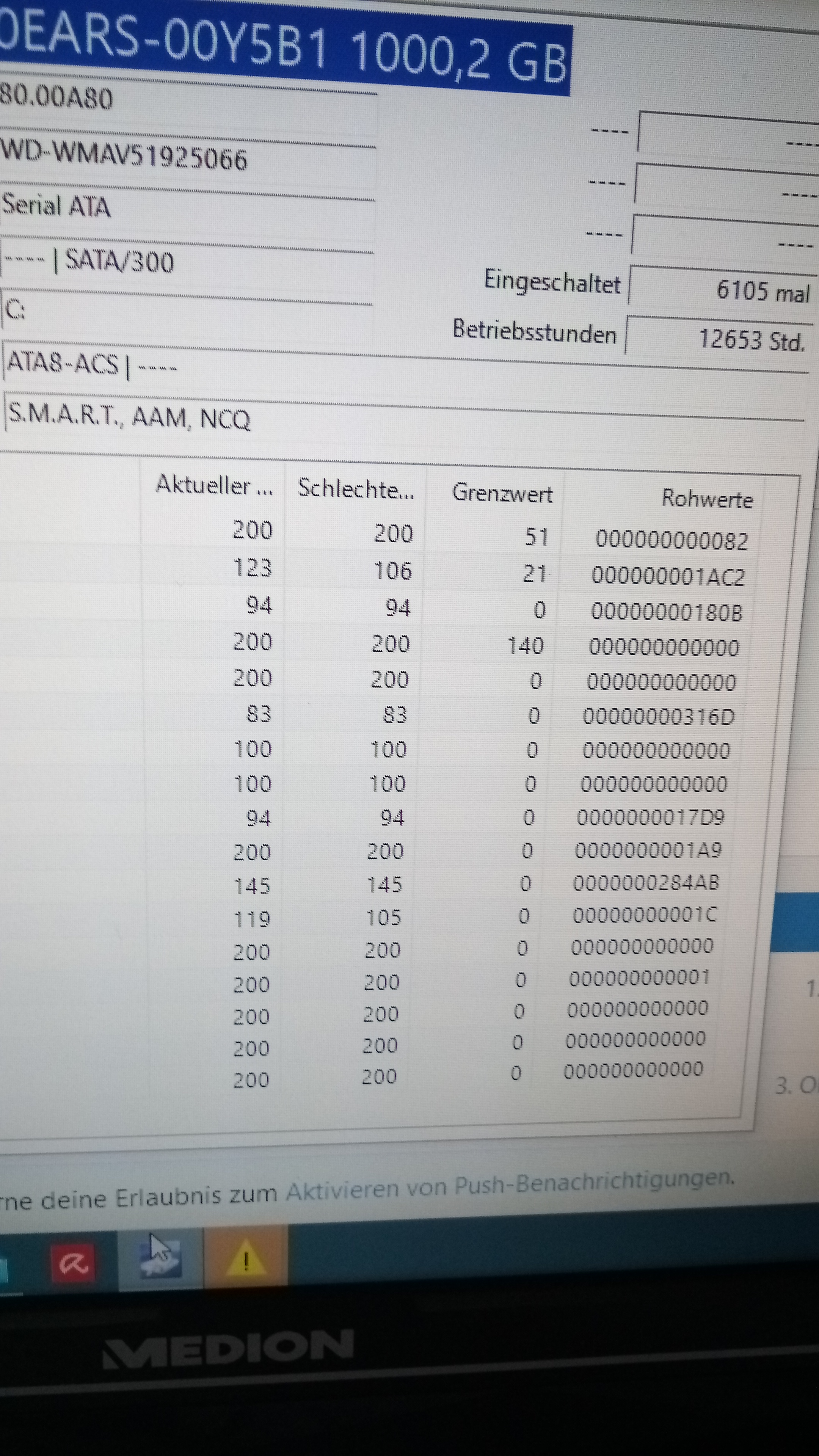 Mach mal ein Screenshot! von CrystalDiskInfo, auf dem Foto kann man nichts erkennen.
