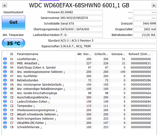 Es werden keine Smart Fehler ausgegeben. Die Platte funktioniert an einem anderen Rechner (Win10) einwandfrei