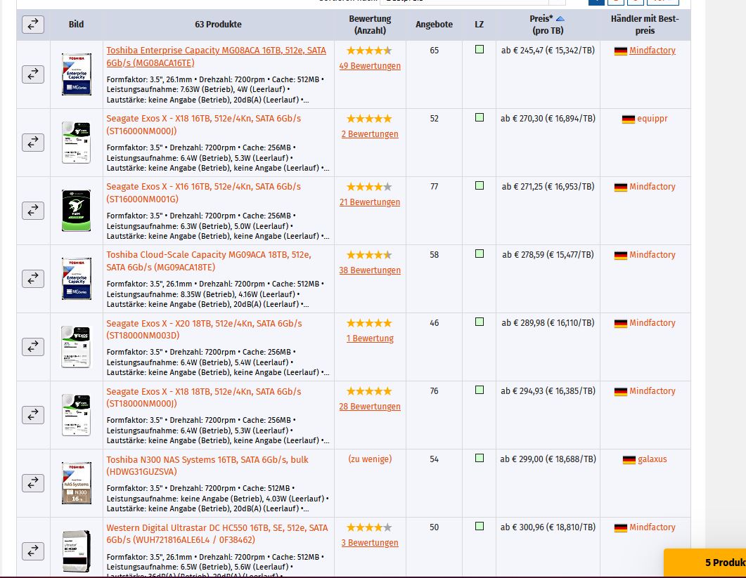 Welche HDD um die 16 oder 18 TB sind denn da zu empfeheln? Eine, die nicht so laut ist wäre gut.