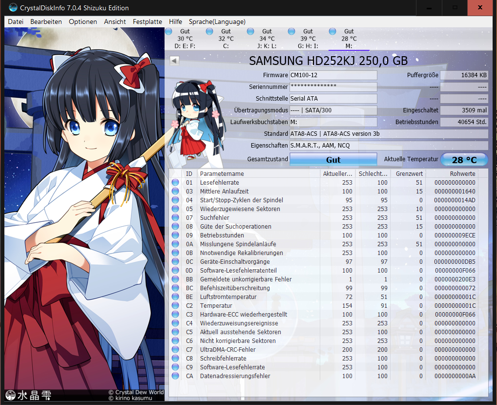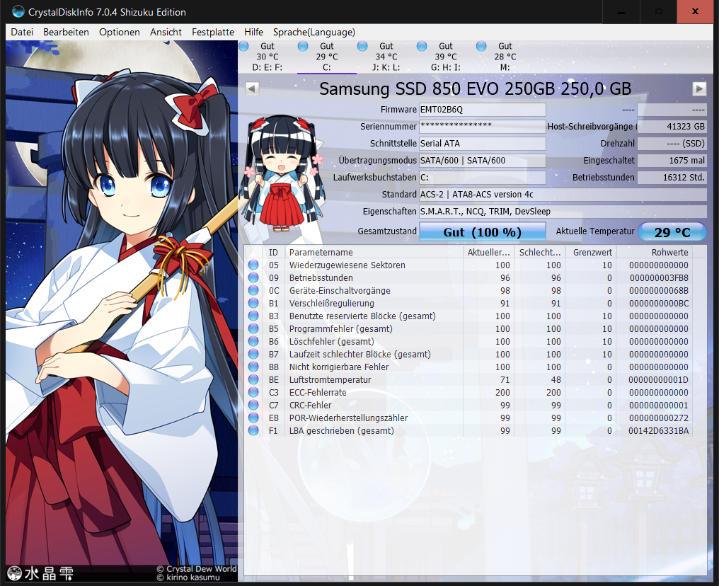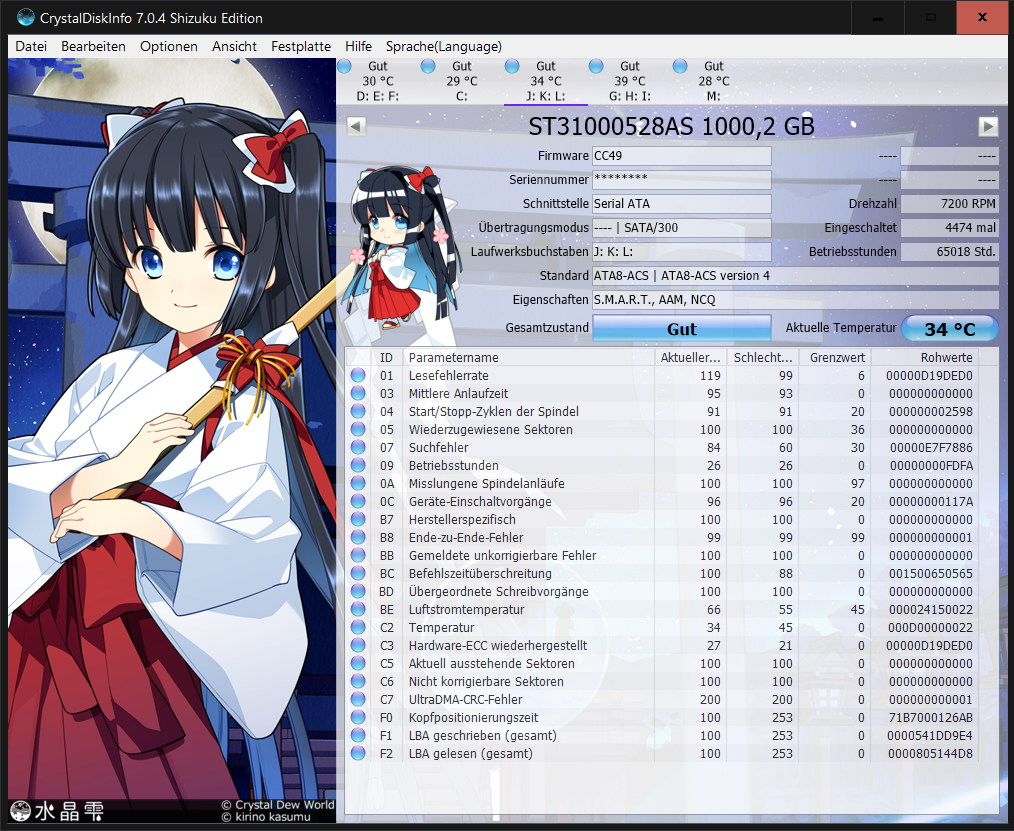 So viel schneller könnten diese 3x 1TB SSDs gar nicht sein, das sich ein Aufpreis von 800,00 Euro lohnen würde. Alle 3 HDDs laufen wie am ersten Tag und erfüllen ihre Arbeit zur vollsten Zufriedenheit. Für das BS [Win_10_Pro_64Bit] werkelt eine Samsung Evo 250 GB SSD! Den kompletten PC mit SSDs als Datengrab zu bestücken, macht erst Sinn, wenn die Preise bei 1TB SSDs auf etwas unter 100,00 Euro sind, das wird aber noch ein paar Jahre dauern, wenn die Entwicklung so träge weitergeht wie in den letzten beiden Jahren.