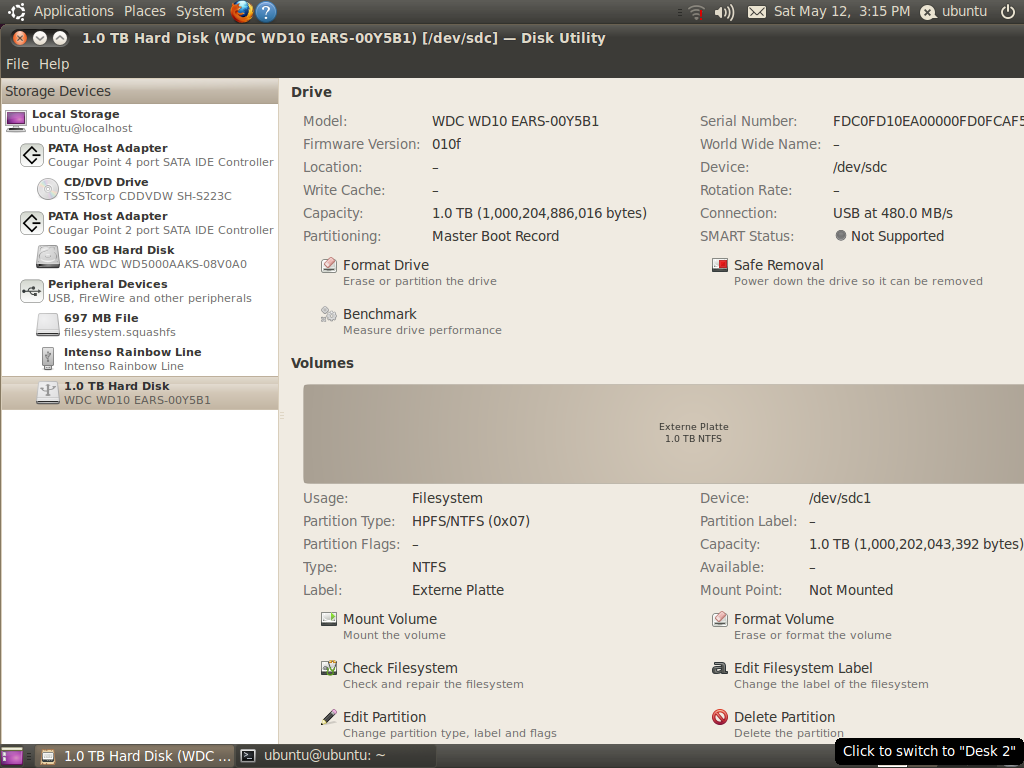 Edit:Im Gerätemanager wird die HDD als funktionstüchtig und korrekt bezeichnet angezeigt.(WDC WD10 EARS-00Y5B1 USB Device)