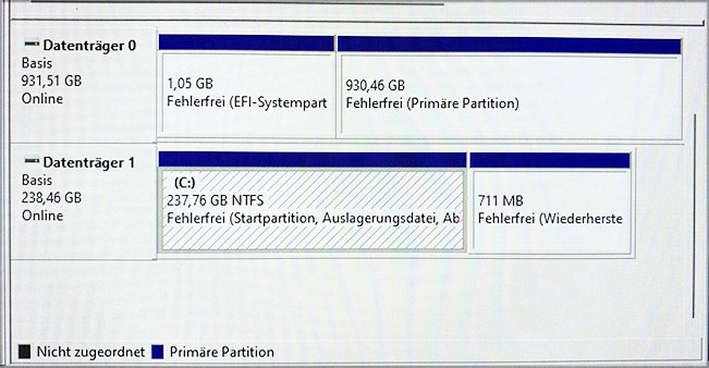 Datenträger 1 ist eine M2 SSD auf der zunächst Linux mint installiert war. Datenträger 0 ist eine 1TB HDD aus dem Vorgängercomputer, auf der Windows 10 installiert ist und sich 28 GB Daten befinden. Man konnte Windows 10 booten und von Linux aus auf die Daten der HDD zugreifen.Da es unter Linux mint unlösbare Probleme mit den Treibern für einen Scanner gab, beschlossen wir (ich habe den PC für eine Bekannte gebaut) doch wieder Windows 11 als Betriebssytem zu nehmen, was ja mit der neuen Hardware möglich war. Da Linux mint nicht durch Windows 11 entfernt werden konnte, ging ich den Umweg über Ubuntu 24 , das mit gparted löschbar war. Ich ging davon aus, dass der Zugriff auf die alte Windows-HDD von Windows 11 aus problemlos möglich wäre. Das war ein Irrtum: die HDD wird in der Datenverwaltung erkannt und unter diskpart gelistet. Aber ich kann ihr unter diskpart keinen Buchstaben zuweisen. Im Explorer und unter "dieser PC" ist die HDD nicht sichtbar.Hat möglicherweise die Installation von Linux zu dieser Situation geführt?