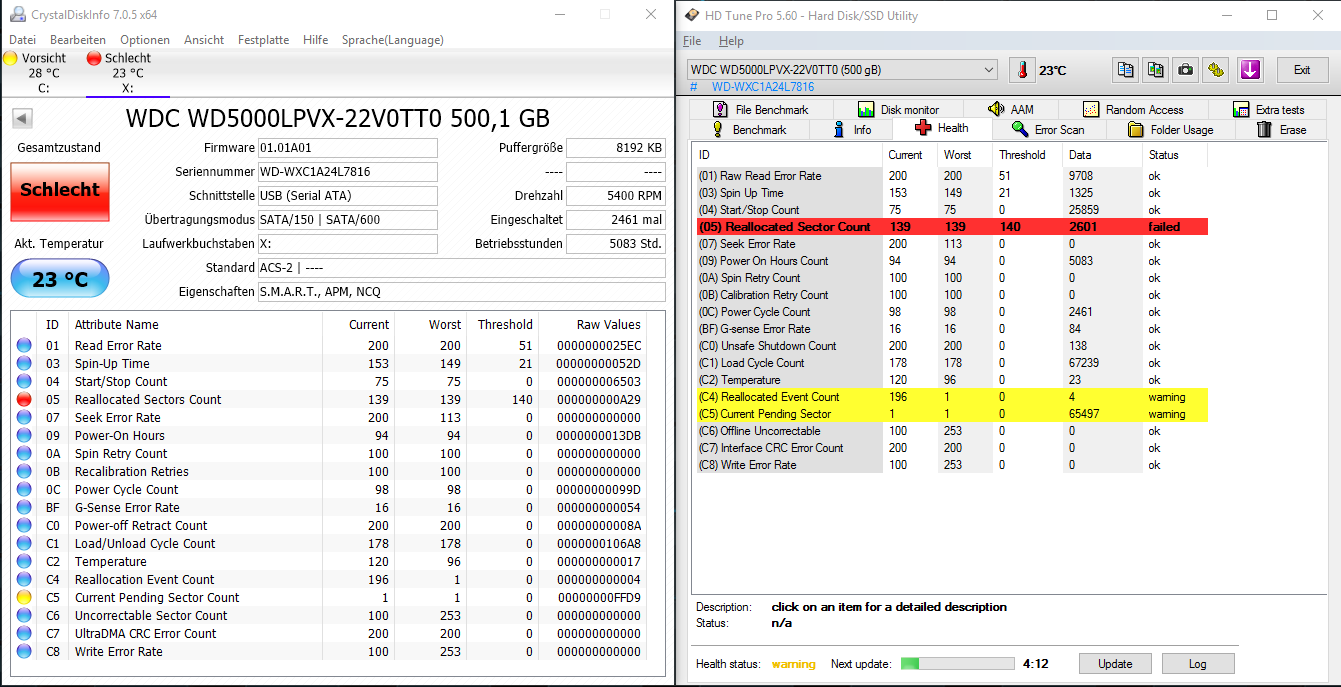Mein Problem: Ich habe einen Laptop zur Reparatur bekommen und entdeckt das die Festplatte (clean/leer) probleme mit dem Laptop bzw. dem Motherboard verursacht ... warum auch immer. Wenn die Festplatte angeschlossen ist komme ich nicht weiter als im Bootvorgang steckenzubleiben ich komm nicht einmal ins Bootscreen (bzw. dass das BIOS, die Festplatte als leer erkenn) oder ins UEFI ... 🤢 aber wenn ich die Festplatte abstecke, gibt es keine Probleme all das funktioniert dann. Ich habe die Festplatte auf meinem Rechner mit einem Docking Station ausprobiert - siehe da, es funktioniert. Manchmal aber langsam, beim ersten Mal hat es fasst mein Computer gefressen 😆 (wohl Verseucht) danach habe ich aber per Computerverwaltung die Featplatte gelöscht, komisch auch das die Festplatte als FAT partioniert war ... nicht FAT16 oder 32! Naja, wie auch immer, es funktioniert auf jeden Fall aber am Laptop leider nicht, eine andere 2,5" habe ich leider nicht, um zu prüfen, ob es an den (internen)-Anschlüssen liegt oder doch konflikte zwischen Festplatte und Motherboard. Was ja eigentlich nicht sein darf, da ich so 3 4 mal in UEFI gekommen bin und das/der Laptop die Festplatte gelesen hat ...