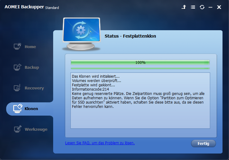 folgendes Problem. Ich habe mit dem AOMEI Backupper versucht, meine HDD auf eine SSD