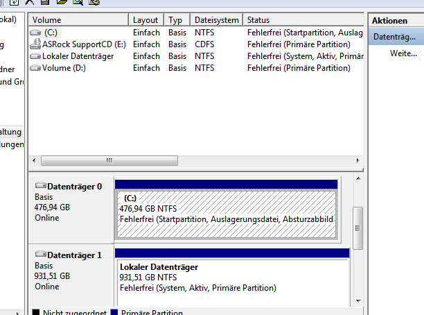 heute habe ich auf meine neue Samsung 850 Pro, 512 GB, Win7, SP1, und alle wichtigen Treiber installiert. Von der vorherigen System-SSD (dort war auch Win7, SP1, installiert) habe ich den Ordner Programme86, Programme und ProgramData sowie Benutzer in einen Ordner einer HDD kopiert, um wichtige Daten (Thunderbird-Profile, Opera, SaveGames) nach dem Wechsel zur 850 Pro parat zu haben. Auf dieser HDD befinden sich auch wichtige Programme im Download-Ordner. Diese HDD wird zwar im Gerätemanger angezeigt, aber nicht über den Win-Explorer. Dort wird nur die neue SSD und eine andere HDD angezeigt.