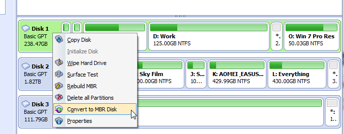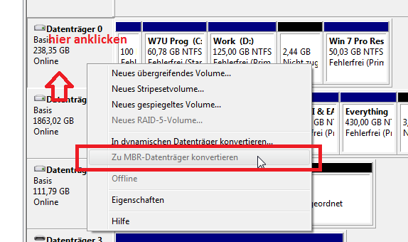 Genau, lade dir http://www.softpedia.com/get/System/Hard-Disk-Utils/Partition-Assistant-Home-Edition.shtml herunter, und wandele von MBR zu GPT um, siehe Bild, dort steht zwar zu MBR da ich in GPT installiert habe.Ich bin jedoch meinem Ziel näher als je zuvor.