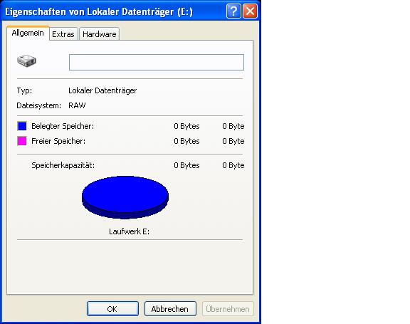 Bild 1) Explorer zeigt die Platte, aber RAW