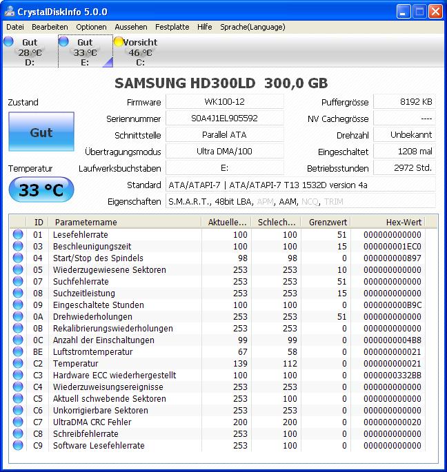 HDD nur noch RAW, FAT12 und 31 Gb statt 320