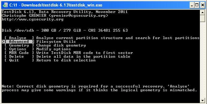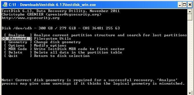 Weiter gehts gleich mit Testdisk, die schritte sind durchnummeriert