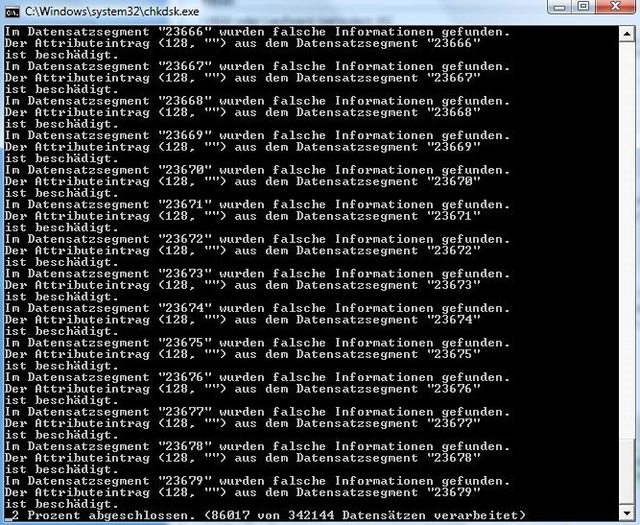 Problem: Wenn ich die zweite Festplatte (1tb WD, NTFS) und mein Laufwerk (älteres DVD Model) anstecke, bleibt der PC manchmal hänmgen (mit Soundloop) und fängt sich dann nach 3-6 Sekunden wieder. Die Fehler treten wie gesagt nur auf, wenn die beiden Hardwareteile angeschlossen sind. Als ich vorhin Origin.exe als Admin starten wollte, sagte er mir was vonwegen ich sollte mal chkdsk durchlaufen lassen. Schmiert aber immer nach 5-11% ab. Das ist ein Screenshot den ich vor dem Absturz machen konnte: