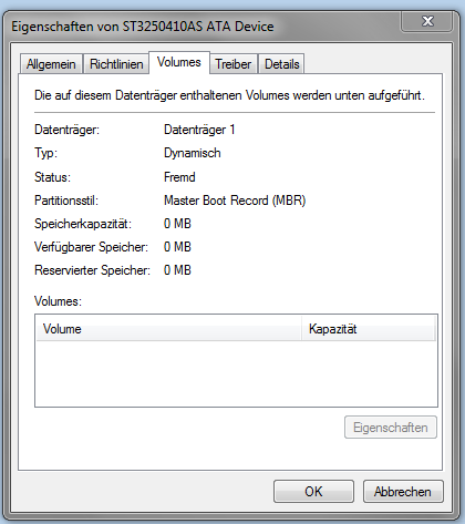 Als alles soweit lief konnte ich meine HDD (Seagate Barracuda 250GB), die ich als Datenträger wie für Musik, Bilder, Programme etc. nutze nicht mehr finden.