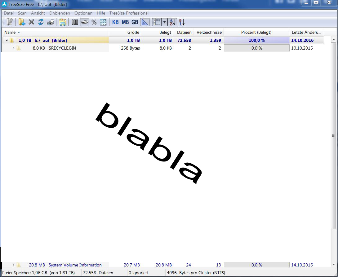 Wollte eine Datei von einer Festplatte auf die andere schieben. Da kam die Meldung Eingabe/Ausgabe-Gerätefehler (habe vergessen zu notieren, welcher genau). Dann habe ich den PC neugestartet und das Problem war behoben. Konnte die Festplatte wieder beschreiben. Zur Vorbeugung dachte ich, lasse ich mal chkdsk f durchlaufen. Hat ein paar Stunden gedauert. Ergebnis -> s.u. Nach chkdsk war die Festplatte dann plötzlich voll laut Windows, obwohl ich nur 1TB an Daten habe. Laut Treesize werden aber korrekt die vorher auch belegten 1TB angezeigt (edit: belegter Speicher wird im Treesize auch nicht korrekt angezeigt).