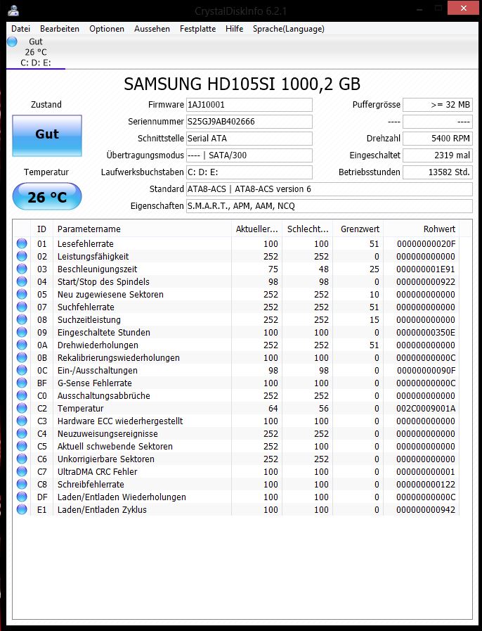 Hab dann mal CristalDisk installiert um zusehen ob es irgendwelche Fehler bei der HDD vorhanden sind, aber laut CristalDisk ist mit der HDD alles in Ordnung. Ich hoffe Ihr könnt mir helfen bzw. sagen woran das liegt und wie ich das wieder in der Griff bekomme. Vielen Dank schon einmal im Vorraus.