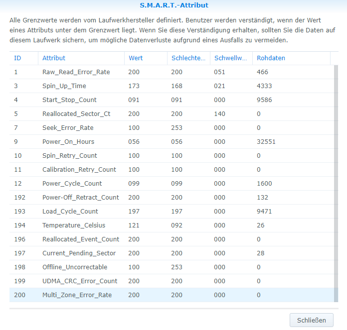 Im Anhang mal die SMART-Werte die mir die Synology ausspuckt.