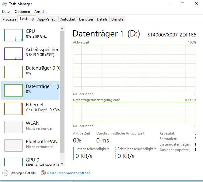 Punkt 1: Ist die Festplatte nicht aus, rödelt sie wie eine Irre. Auf ihr sind bisher aber nur Bilder. Was macht sie da permanent? Im Task Manager konnte ich den Übeltäter noch nicht finden. Als würde sie ständig arbeiten, ohne Zugriff darauf zu nehmen.