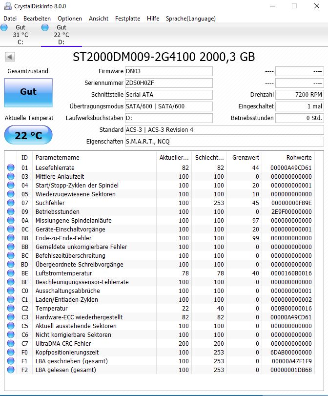 Naja die Platte ist eh nur zum Übergang drin, kommt demnächst in ein anderes System. Vielleicht steige ich dann komplett auf SSD um oder es kommt ne günstige Barracuda rein.