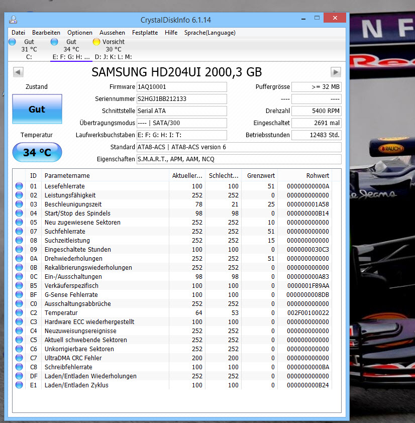 Crystaldisk Info sagte mir auch das das was nicht stimmt.