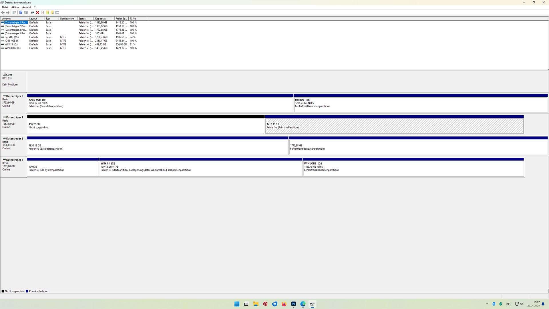 Und bei Datenträger 1 gibt es einen fast 500gb freien Bereich ohne eine Partition