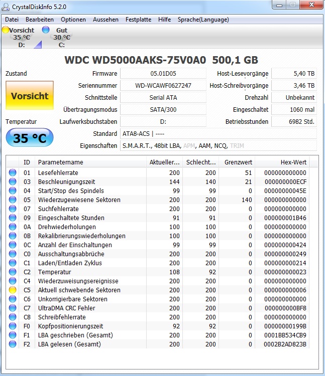 Daten sind schon gesichert und von der CrystalDisk Auslese werde ich nicht unbedingt schlau.