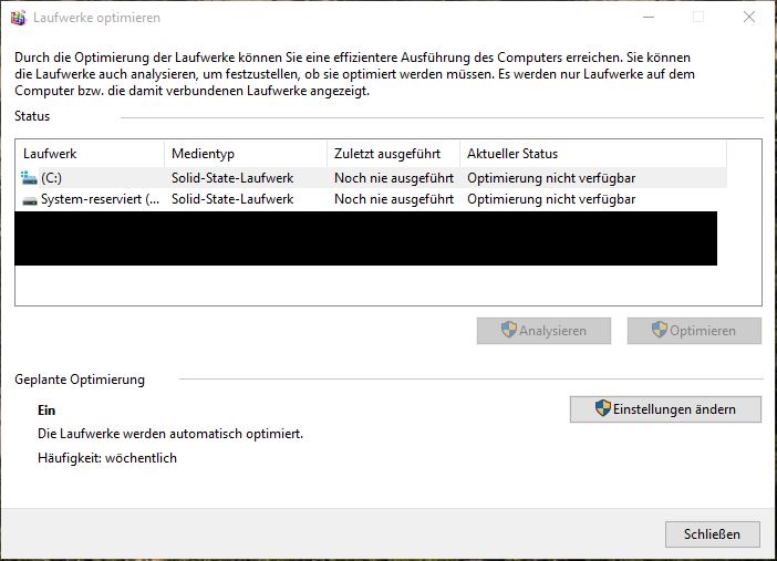 Wenn ich Windows 10 nun von der HDD starte, dann erkennt er die HDD als SSD und daher ist keine Optimierung möglich: