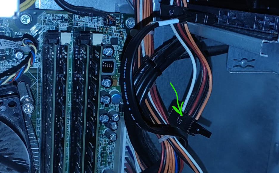 Da ich den Brenner nicht nutze, möchte ich dessen Datenkabel für die neue HDD anschließen. Von dem Brenner geht auch ein freier Stromstecker ab, dh vom Strom muss ich ihn nicht trennen.