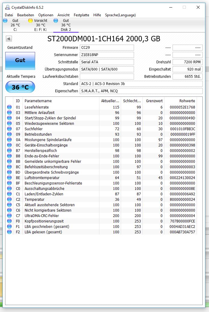Bei der einen zeigt mir Crystal Disk Info an das ich vorsichtig sein soll