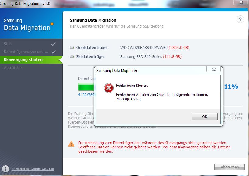 Nun wollte ich das alte Windows (auf 64GB Partition) auf die 120GB SSD Migrieren...