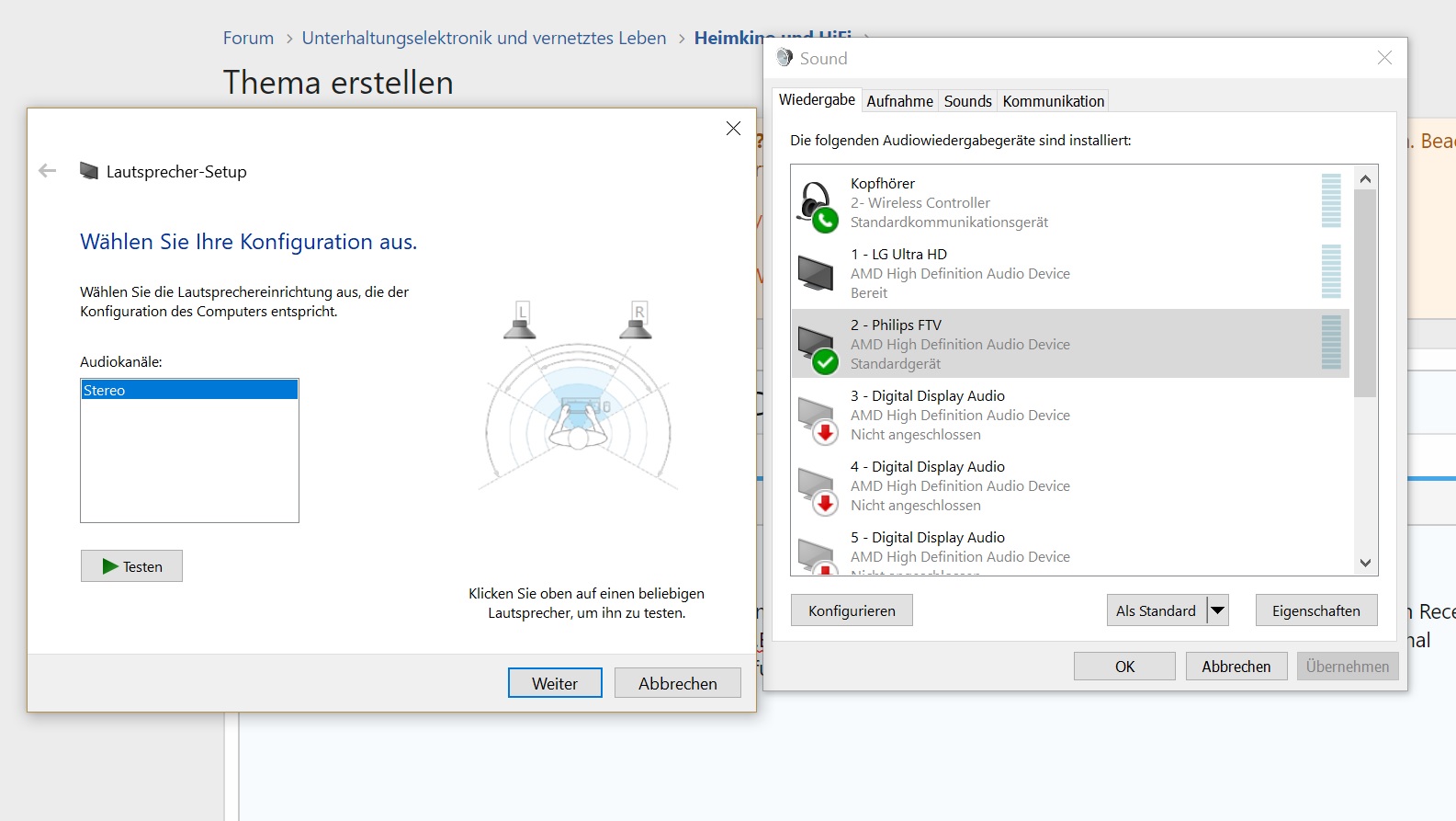 ich habe meinen PC (Vega 56) per HDMI an meinen Fernseher angeschlossen (Philips 65pus8102). Der TV ist per HDMI an einen Receiver mit 5.0 Setup angeschlossen. Ich gehe neben dem PC z.B. mit einer PS4 Pro direkt in den TV und kann trotzdem ein 5.0 dts-Signal durchschleifen. Wenn ich jetzt aber den PC anschließe, funktioniert nur Stereo. Auch kann ich nicht konfigurieren, dass ich ein 5.0 System habe (so wie das normalerweise funktionieren würde -> siehe Bild).