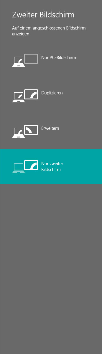 ) kann ich mit windows+p nicht mehr auf pc bildschirm umschalten (zu sehen im screenshot 2). denn der ist für das betriebssystem der hdmi (der 1.). so muss ich es immer als 2. bildschirm laufen lassen, sonst ist das bild weg.