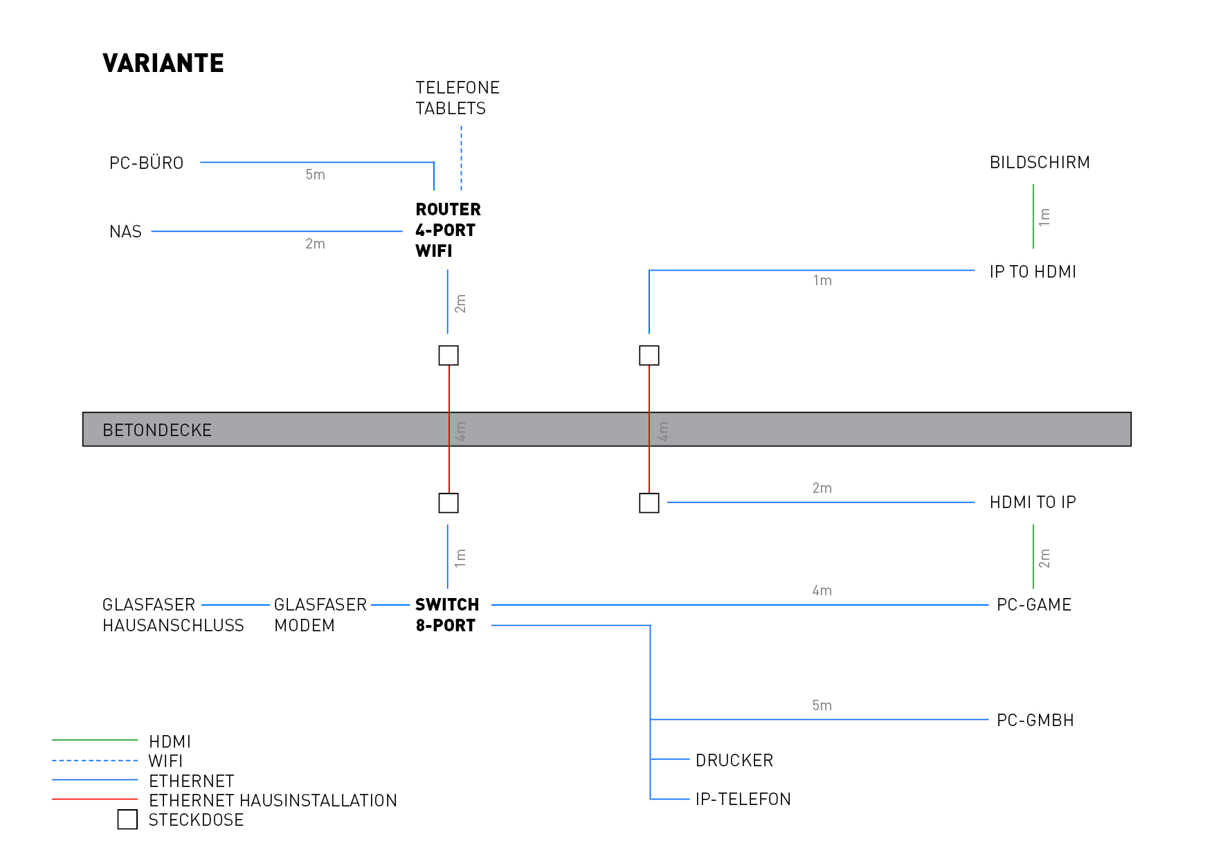 Das Kabel ist nur ca. 4m lang und in der Wand, geschossübergreifend.