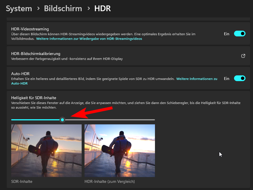 Nach Aktivierung der HDR Funktion in Windows 11: