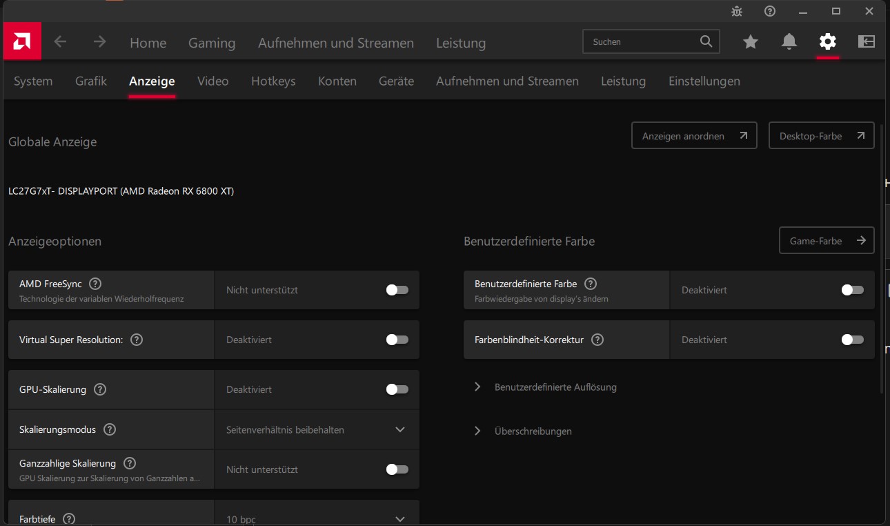 die Standart einstellung der GPU Anzeige Farbeinstellung ist