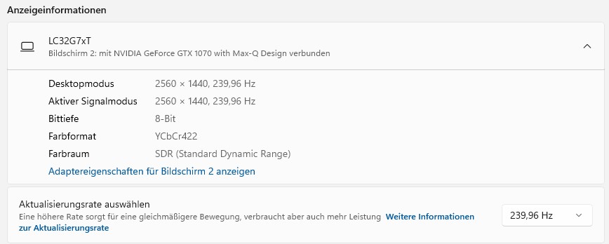 ich habe es mal versucht aber irgendwie scheint es bei mir nicht zu gehen. ich habe den Samsung g7 32" und eine 1070 Max-Q. Bei mir sieht es wie folgt aus: