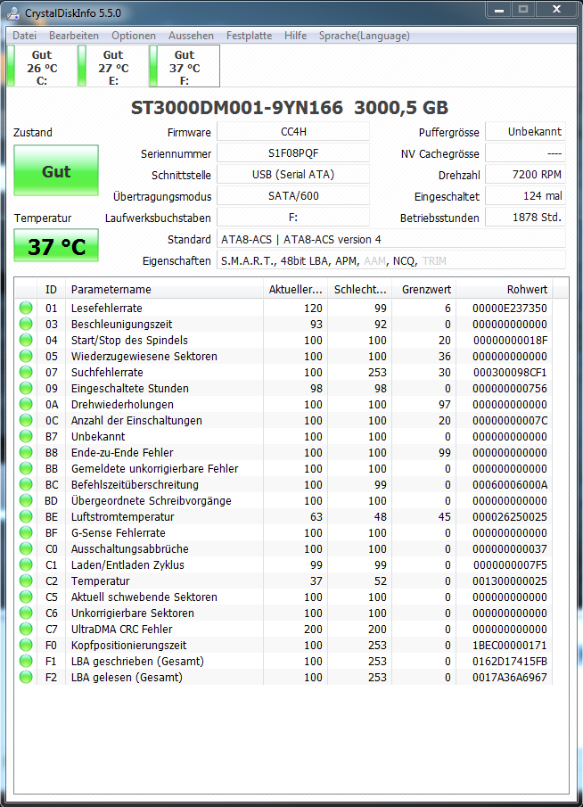 CrystalDiskInfo scheint alles als OK einzustufen.
