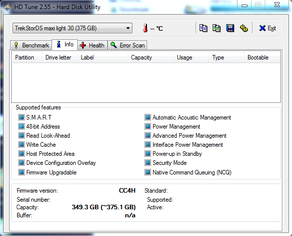Weil mich das nen bisschen stutzig gemacht hat habe ich dann HD Tune installiert. Der scheint aber gar nicht mit der Festplatte klar zu kommen und zeigt nur 375GB an.