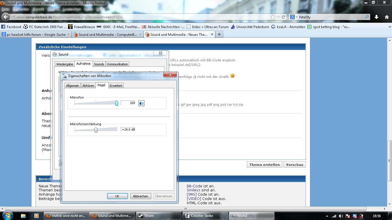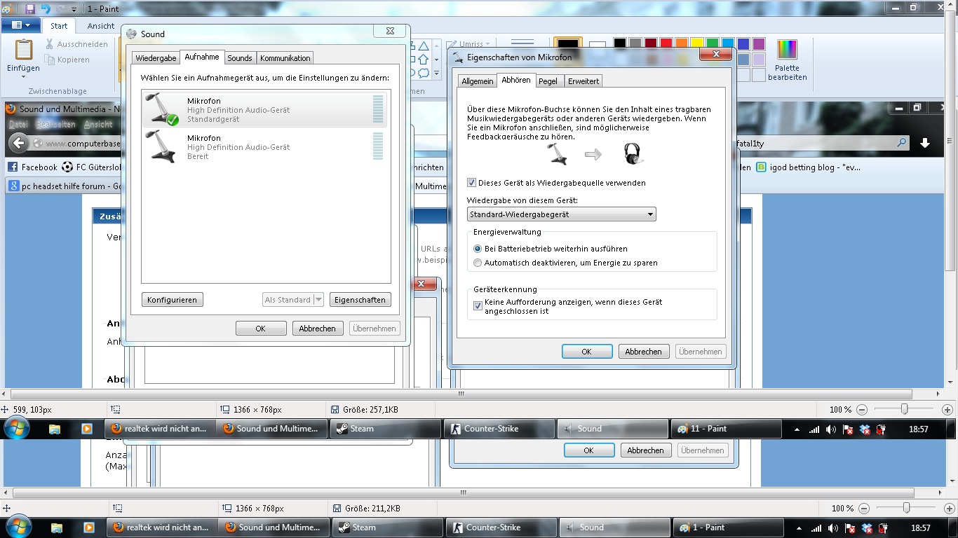 Hab mir gestern ein neues headset zugelegt. ist das creative fital1ty. also ich kann dadurch hören doch leider funktioniert das Mic nicht. also ich hab mich jetzt 2 tage rumgegoogelt und alles mögliche versucht, aber bis jetzt hat nix geholfen.