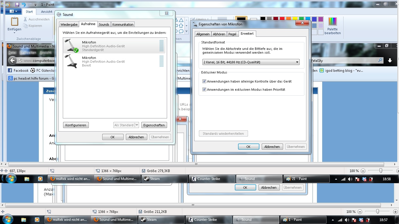 Es wird mir unter Aufnahmegeräten auch angezeigt aber es reagiert da auf nix habe die Lautstärke auch schon hochgestellt etc. Der pc hat windows 7. bin mit meinem latein langsam am ende und wende mich deshalb bittend an euch. hoffe jemand kann mir helfen