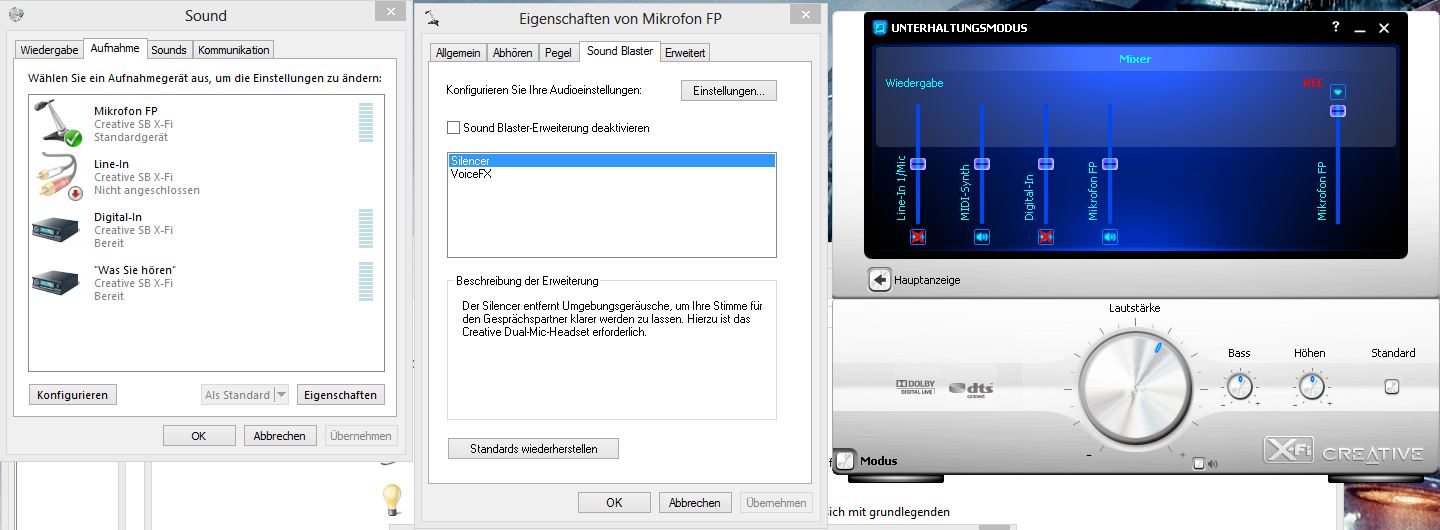 Benutze Windows 8 und das headset ist ein creative fatalyty.