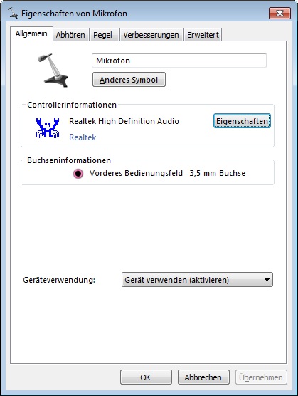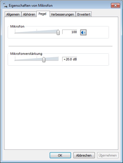 Und unter den "Eigenschaften" des Mikros (Systemsteuerung) finde ich ebenfalls nichts Verdächtiges.