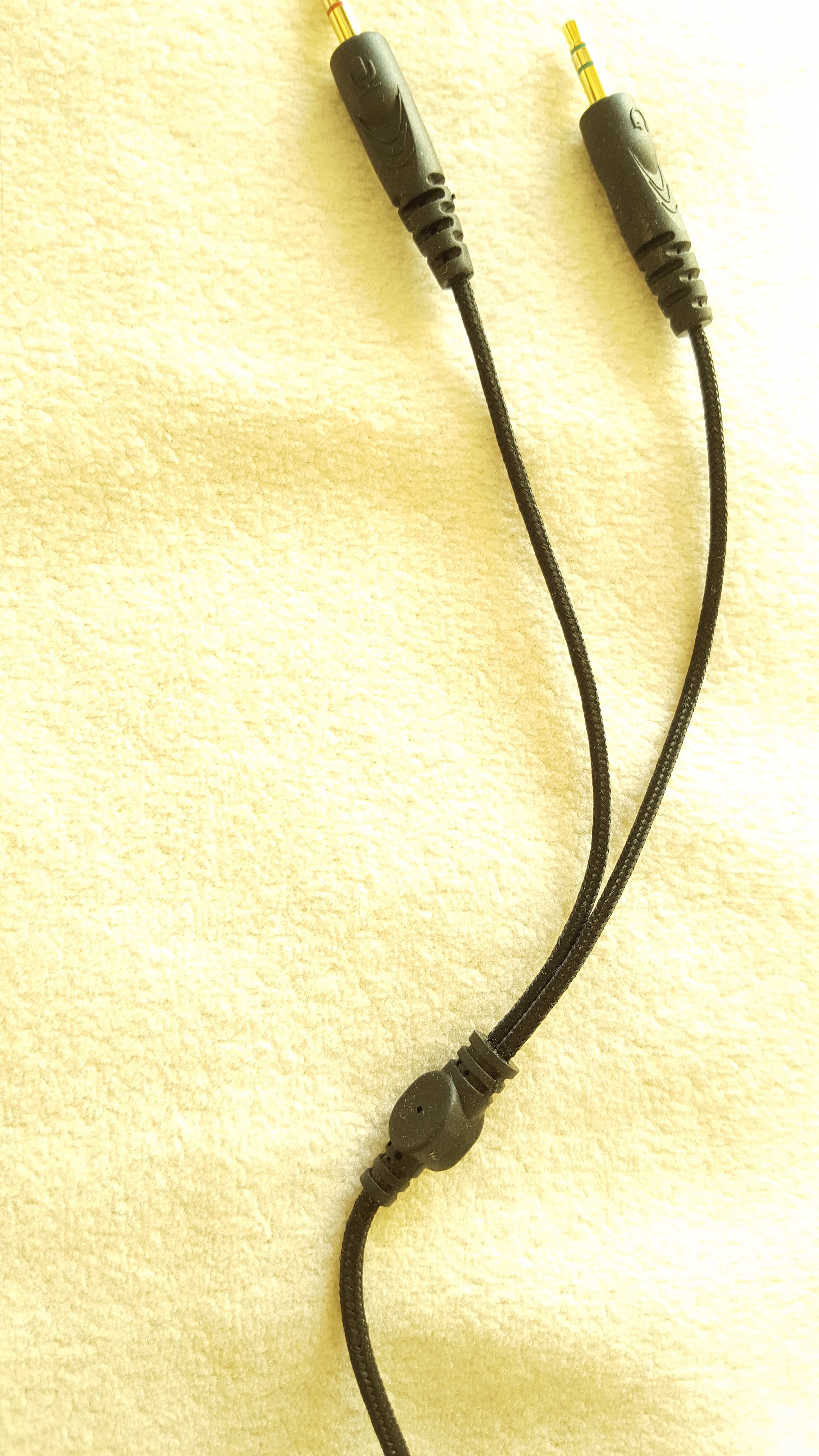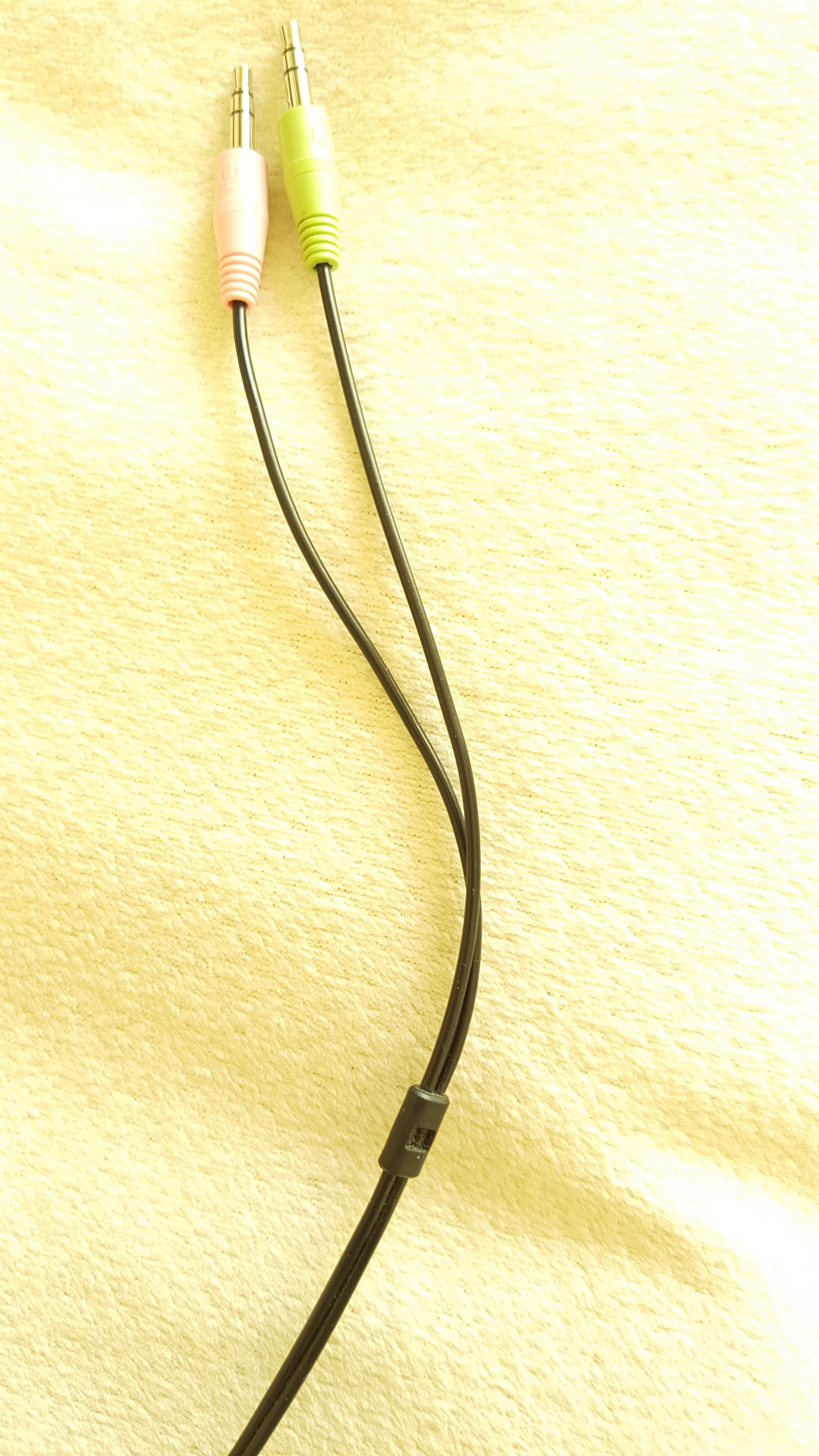 Bei dem neuen Headset ist ein Adapterkabel dabei, weil es von 4-polig (TRRS) auf 2x 3-polig (TRS) Klinke umleitet. Wenn ich nun nur dieses Adapterkabel an den PC anschließe (Grün/Rosa-Klinke), ohne das Headset am Adapterkabel, dann ist derselbe Effekt vorhanden. Es kann also schonmal nicht am Headset per se liegen! Wenn ich nun nur das Mikrofonkabel vom Adapterkabel einstecke, aber am Lautsprecherausgang das Kabel vom alten Headset, dann tritt der Effekt nicht auf!