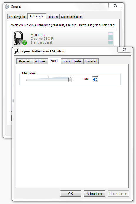 Das gleiche habe ich auch mit meinem Notebook (Windows 8.1, Onboard Soundkarte) in Kombination mit dem Headset. Das im Display des Notebooks eingebaute Mikrofon funktioniert dagegen tadellos.