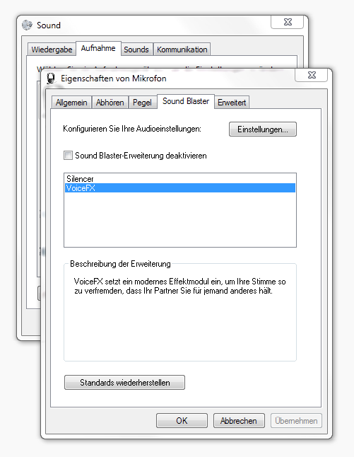 - Soundblaster X-Fi Titanium HD (aktuelle Treiber)