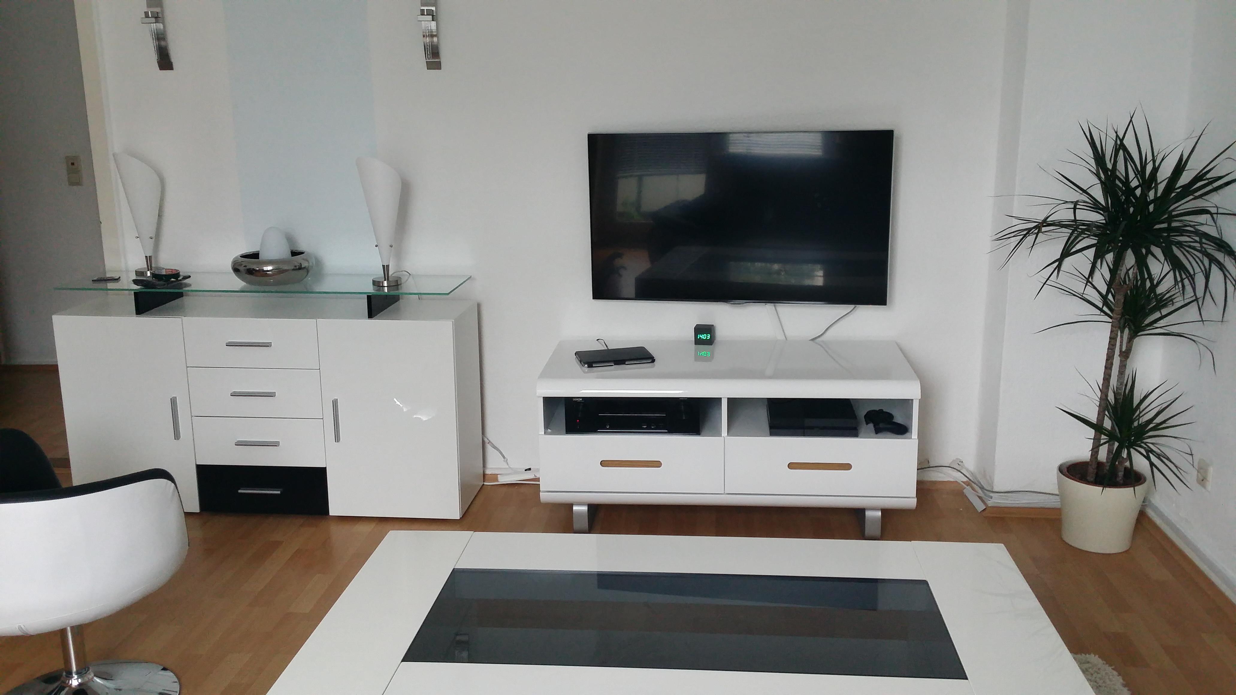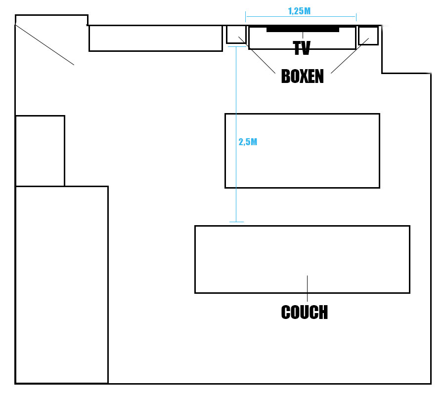 Das passt so schon einmal nicht wirklich in meiner Vorstellung zusammen. Die Lautsprecher stünden dann sehr nah beisammen. Lautsprecher brauchen Platz. Die Distanz zwischen den Lautsprechern hängt von der Hörposition und deren Entfernung zu den einzelnen Lautsprechern ab. Kannst Dich dazu selbst ein wenig belesen: "Stereodreieck" ist da wohl der richtige Suchbegriff.