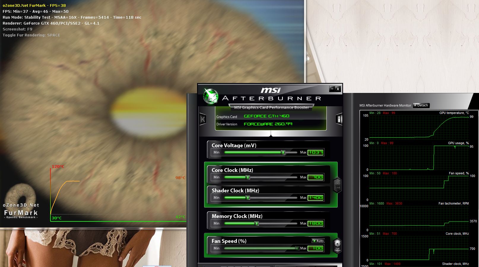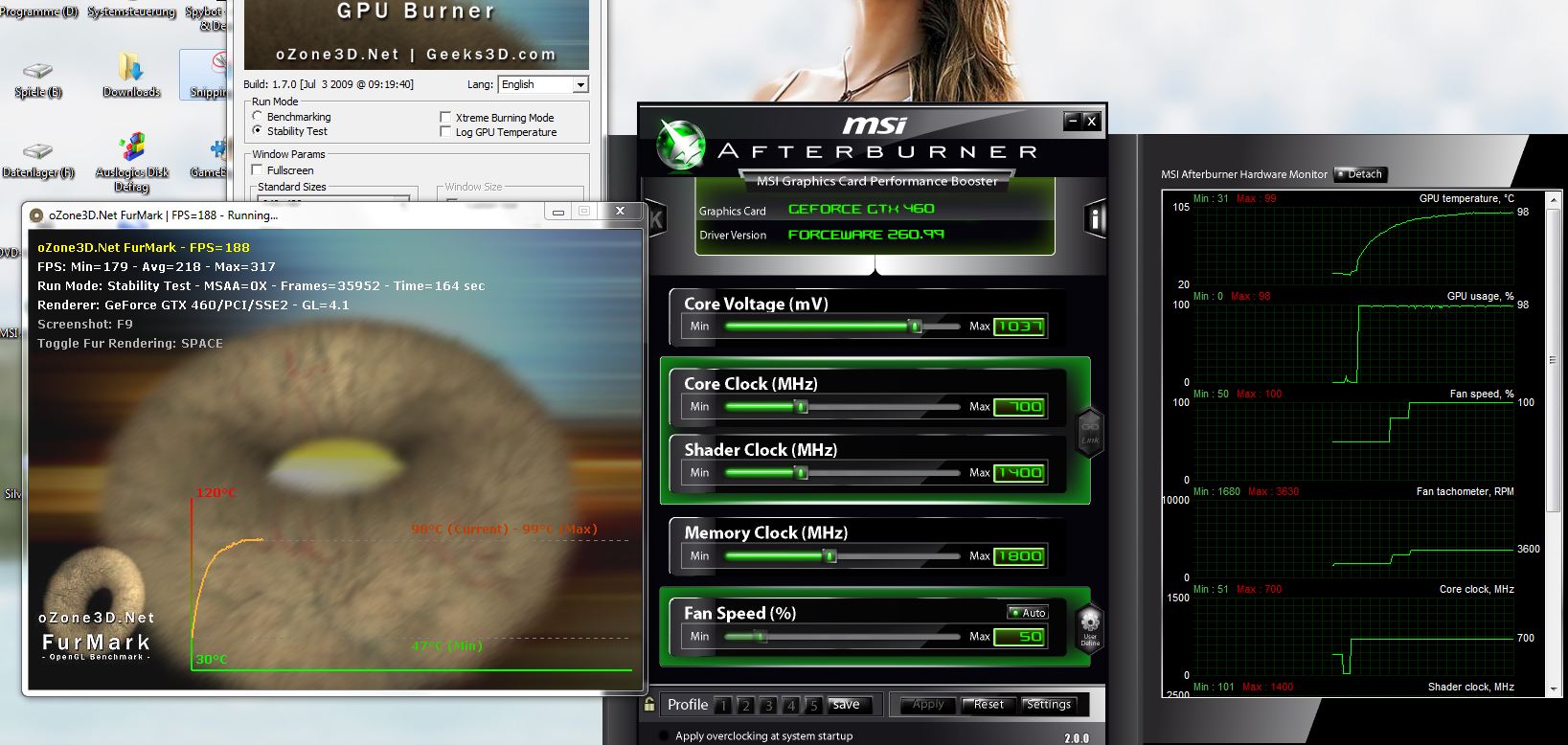 Ich habe noch eine Screenshot hochgeladen, auf dem FurMark und Afterburner abgebildet sind.